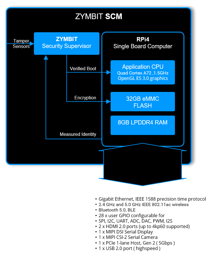 The Zymbit Secure Compute Module (SCM) is an all-in-one Linux compute module - secured and ready to deploy into your IoT and edge applications : a Zymbit Security Module + Hardware Wallet + Raspberry Pi CM4 integrated into a secure encapsulated module.